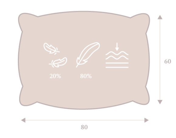 The of the pillow is 60×80 cm and it has a medium soft feel.