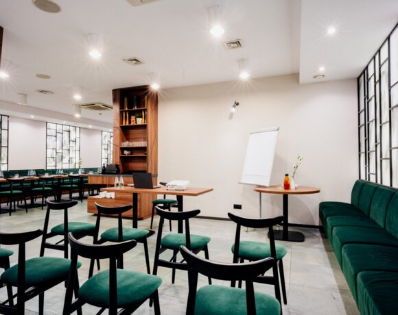 Ascot Premium Hotel**** пропонує в оренду просторий зал, що ідеально підходить для проведення конференцій, тренінгів або ділових зустрічей.